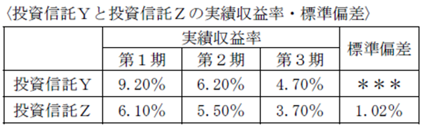 ①投資信託Yの標準偏差はいくらか。