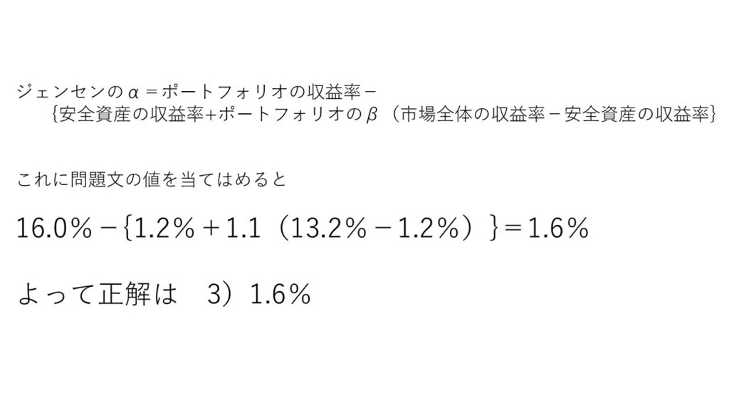 シャープレシオ、トレイナーレシオ、インフォメーションレシオも見たことがあるけど、ジェンセンのαは頭に入ってないんだよな