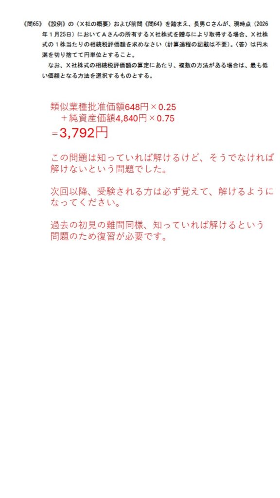 問65は、初見の出題パターンのため、知らない人はお手上げだったかもしれません。