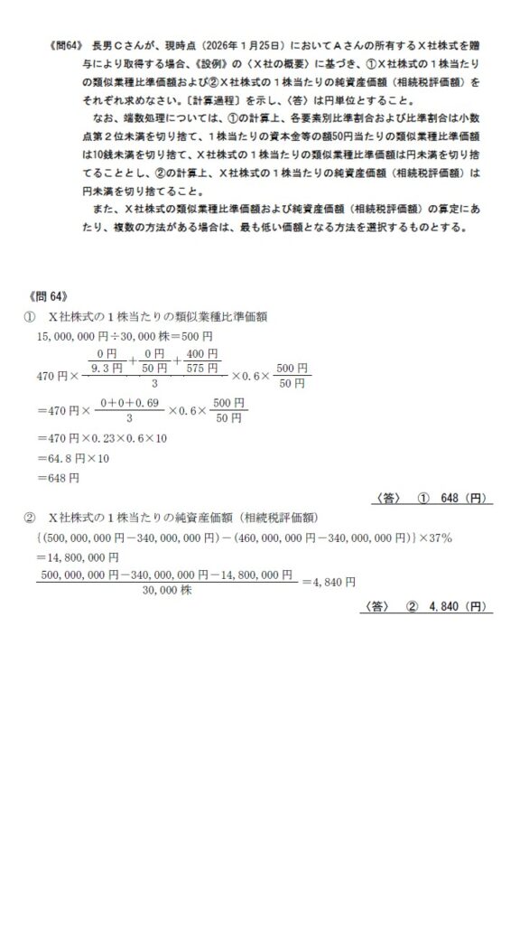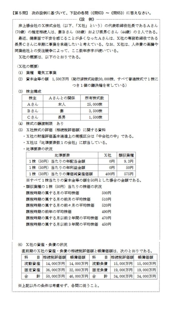 批准要素1の会社の類似業種批准価額の問題がついに出題されました。