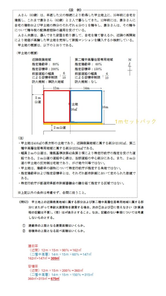 問62の建蔽率・容積率は比較的取り組みやすい内容だったと思います。