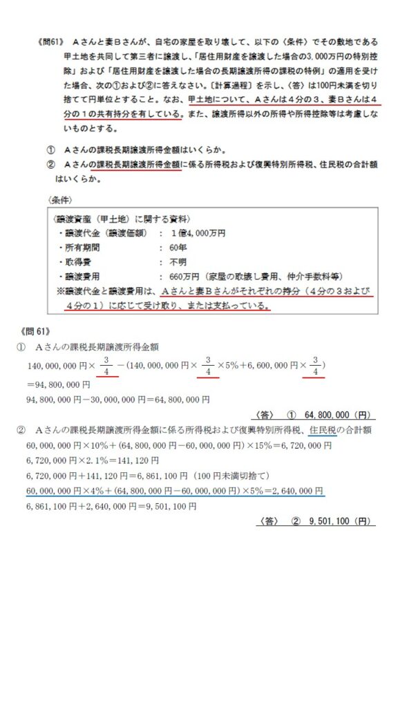 問61は妻Bさんの共有持ち分をどうするか悩ましかったと思います。