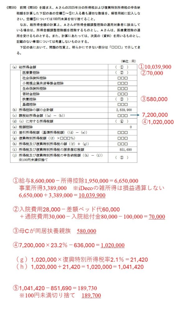 問58、問59は計算問題で、加えて途中間違えたら、連鎖して次の問題も間違えるタイプの問題だから慎重に計算をする必要があるね
